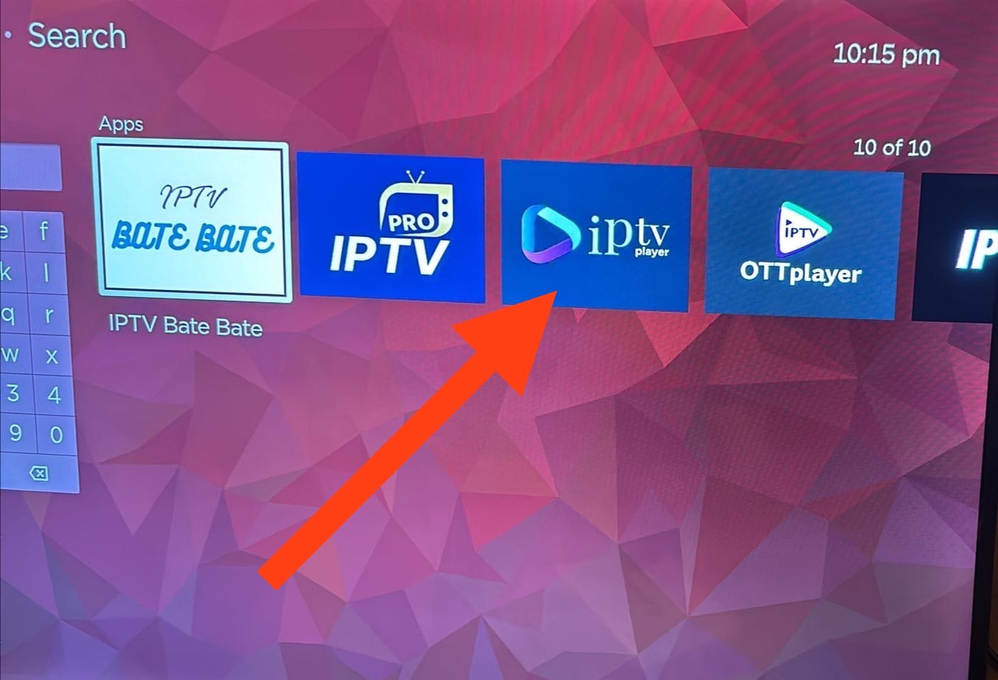 Go to the Apps section and search for: IPTV, then select IPTV Player app. (See the images below):